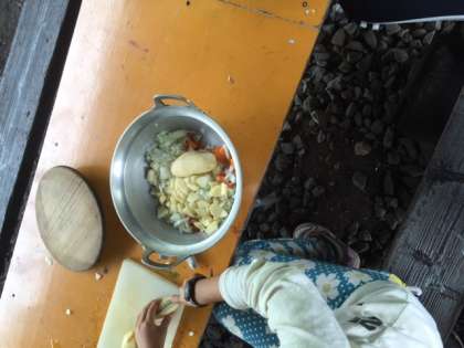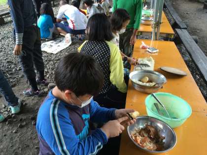 調理にとりかかります。恐る恐る包丁で切ったり、皮をむいたりしています。