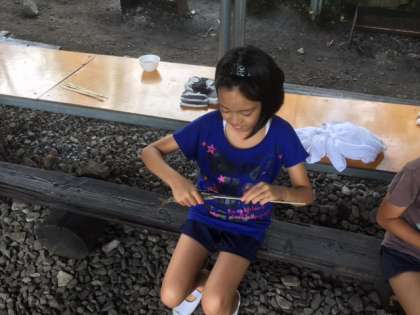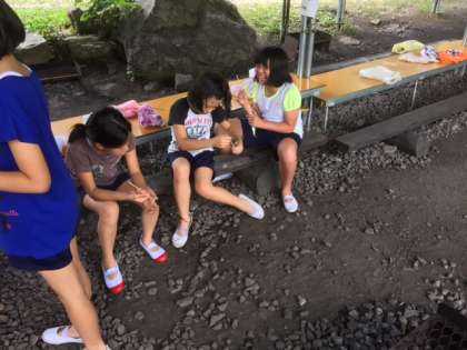 捕まえた魚は、串打ちをして、炭火で焼きます。