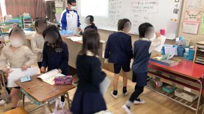 算数の学習がひと段落し、ノートを前に提出していました。次は、どんな学習をするのかな?