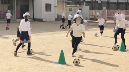 体育は、サッカーの学習に入りました。この時間は、ドリブルの練習を頑張りました。
