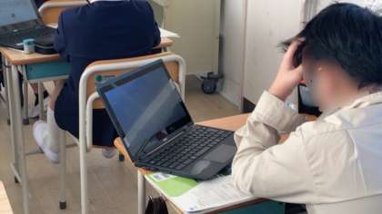 社会科の学習です。SNSについての動画を見ていました。現代を生きる子どもたちにとってとっても大切な学習です。