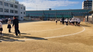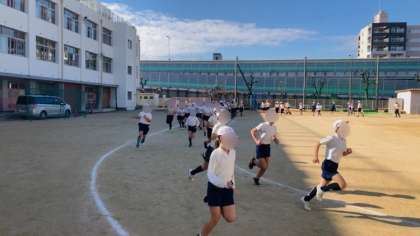 今週からかけ足週間に入っています。今日は、高学年の日です。しっかり準備運動をしてかけ足を頑張ります。