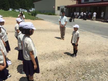 閉所式、児童代表のあいさつです。3日間お世話になりました。楽しい思い出がたくさんたくさんできました。ありがとうございました。
