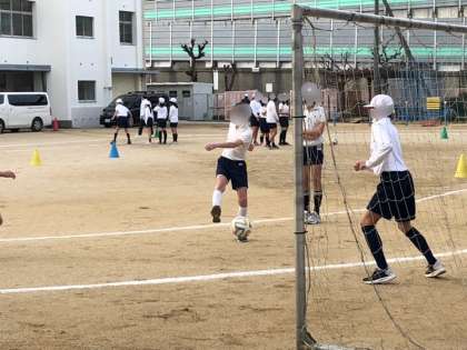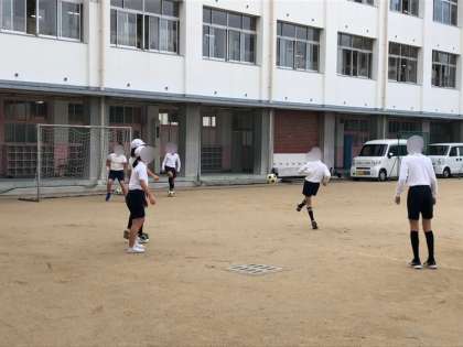 体育はサッカーの学習です。チームに分かれてシュート練習を中心に活動していました。