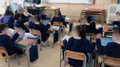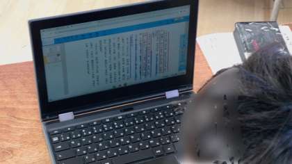教科書はタブレットのデジタル教科書を使いました。文に線を引いたりすることが容易にできます。