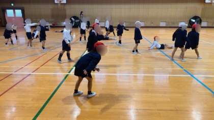 体育の学習の様子です。全員で「だるまさんがころんだ」をしたり、ドッジボールをしたりして身体を動かしました。