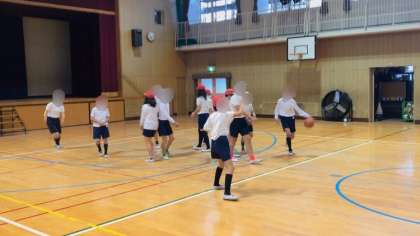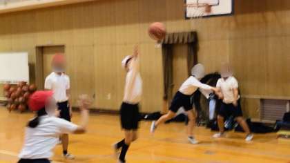 体育の学習で、バスケットボールのゲームをしていました。