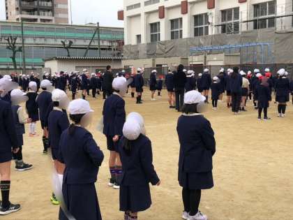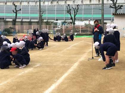 今日の児童集会は集会委員会によるゲームでした。タンバリンを打つ音の人数で集まるゲームで、子どもたちはよく耳を覚ませて音を聞いて活動していました。