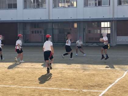 体育の学習です。タグラグビーのゲームも回を重ねるごとにいいプレーか続出して素晴らしいものになっています。
