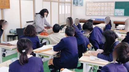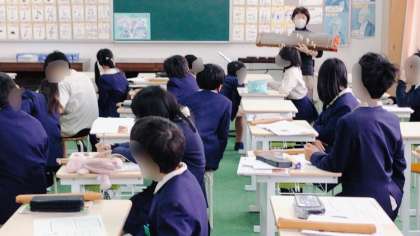 音楽で琴について学習していました。一人ひとり弾いてもみました。とても綺麗な音を出していて、びっくりしました。