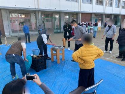 昨日(2月12日日曜日)、本校を会場にして梅香地域の餅つき大会がありました。子どもたちはもつきたてのお餅を美味しくいただきました。