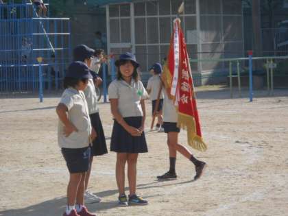 児童会の子どもたちが、放課後優勝旗や楯の返還や授与の練習をしています。いい思い出になるように頑張ってほしいと願っています。