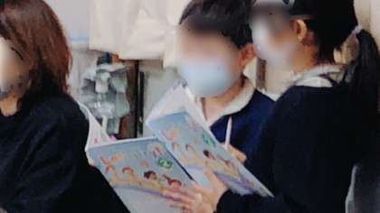 英語の学習です。学校の中の場所で好きな所はどこかを互いに英語で聞き合う学習です。