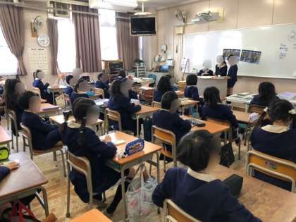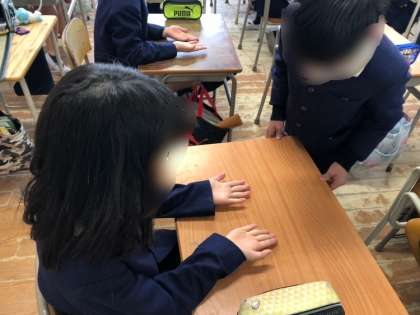 朝の会の時間に健康委員会の児童が各教室を回り健康チェックをしています。ハンカチ・ティッシュを持っているかや爪が伸びていないかなどを確認しています。一人ひとりがしっかり準備してこれるようになることか最終の目的です。