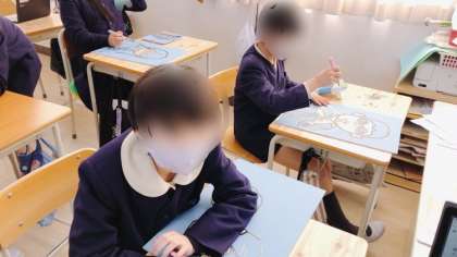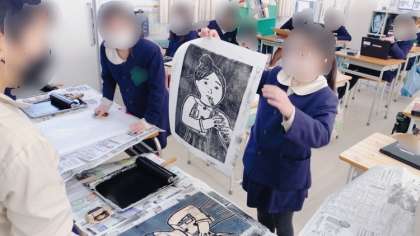 図工の学習で、木版画に取り組んでいます。自分がリコーダーを吹いている様子を彫りました。出来栄えは上々です。