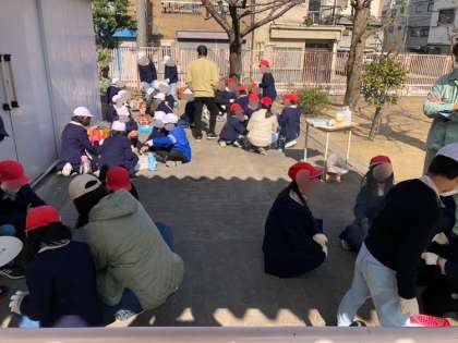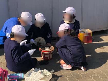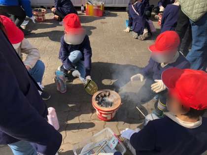 総合的な学習の時間に七輪体験をしました。七輪に火を起こしてお餅を焼いて食べる活動です。どの班もなかなか火が起こらず苦戦していました。ボタン一つで簡単に火を扱える時代に生きている子どもたち、昔の方の苦労や工夫などを感じ取れる時間になりました。