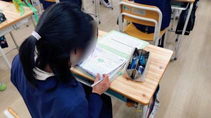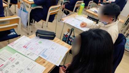 算数テストを返し、今までのテストの整理をしていました。返してもらったテストの結果に一喜一憂しながらも答え合わせややり直しをしっかりしていました。