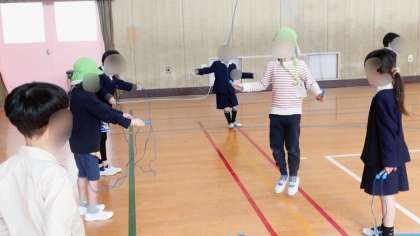 「だるま落とし」と「縄跳び」の様子です。