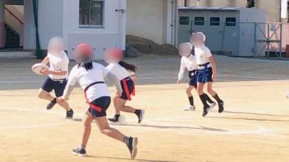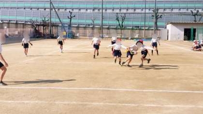 体育で行っているタグラグビーのゲーム大会の順位決定戦です。素晴らしいプレーが続出していました。