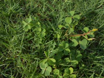 これは、カタバミです。芝生全体で見られます。