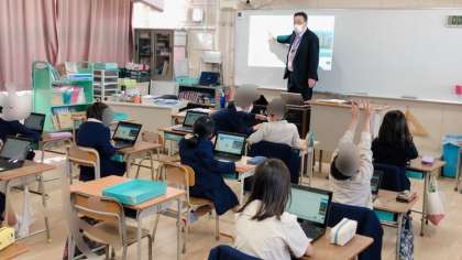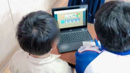 プログラミング学習です。定期的に来ていただいているICTアシスタントに指導していただきました。