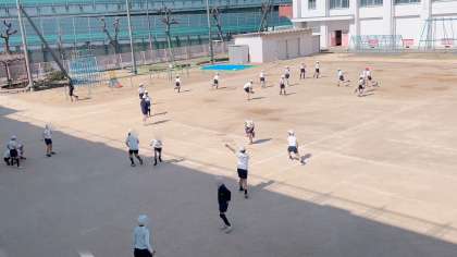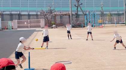 運動場のぬかるんでいたところに土を入れて使えるようにし、ティー