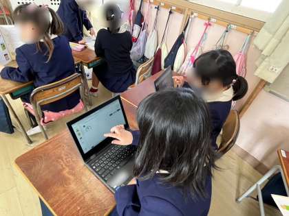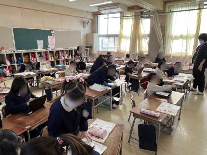 算数の時間にまとめの問題をしていました。わからない所を先生にアドバイスをもらったり子ども同士で教え合いをしたりして取り組んでいました。タブレットドリルをしている子もいました。