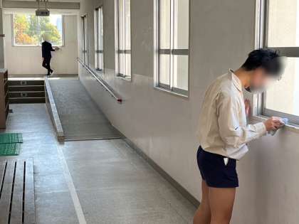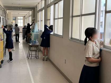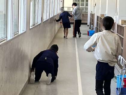 各校舎の廊下壁や窓などを清掃してくれています。とっても嬉しいです。ありがとう!