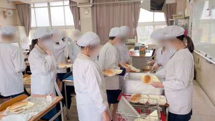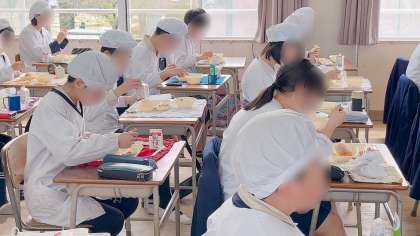 6年生の様子です。小学校最後の給食をしっかり噛みしめていただいていました。中段は1組、下段は2組の様子です。