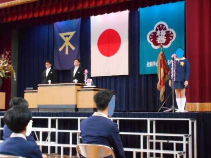 校長から卒業生一人一人に壇上で証書を授与しました。壇上に上がった時、将来の夢を発表してくれました。その後、檀上中央で授与しました。皆とても晴れやかな顔で受け取ってくれました。