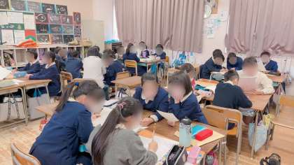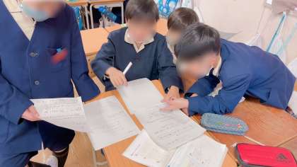 国語の学習で、「調べたことを発表しよう」の単元です。各班でテーマを決め、学級でアンケートをとって調べたことを発表します。各班で、アンケートの集計と発表内容を話し合っていました。