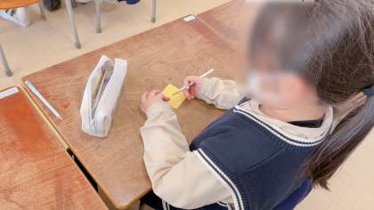 来年度入学する新1年生に向けての学校紹介の掲示物を作っていました。後輩のために張り切っています。
