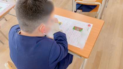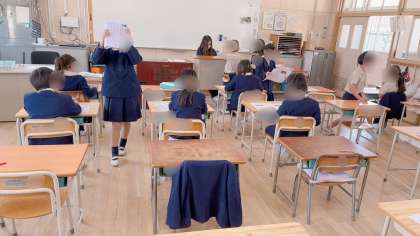 2年生の様子です。国語のテストを返してもらっていました。今からみんなでやり直しをします。めいめいが自分の間違えたところを確認してしっかり復習します。