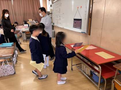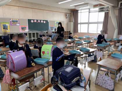 登校してきたら、ランドセルの中を確認して、教科書等は机の中に提出物は前の所定のところにランドセルは自分のロッカーにそれぞれ置いたりしまったりします。今はまだ手伝ってもらう場面もありますが、そのうち、朝のルーティンとして確立していくことでしょう。