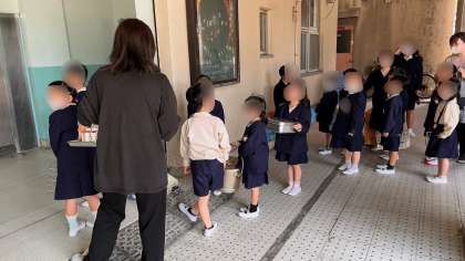 食器等を返却するのは自分たちでやりました。給食室では大きな声で「ごちそうさまでした」と調理員さんたちに伝えていました。