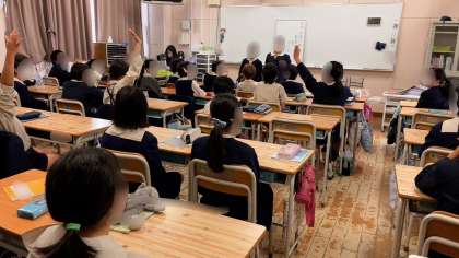 宿題の答え合わせをしたり、昨日の出来事を発表したり、学級によって様々です。上段は6年1組、下段は5年1組の様子です。