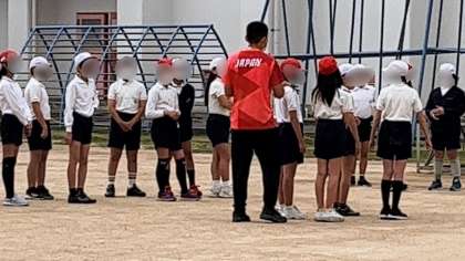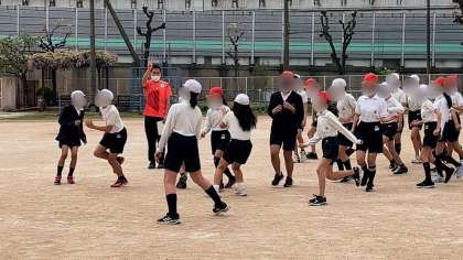 体育の学習で、集団行動の確認や練習をしていました。先生のいる所へ素早く集まって整列します。さすが6年生、とても早く綺麗に整列していました。