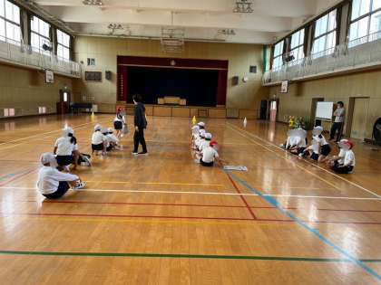 体育の学習で、リレーゲームをしていました。レース毎に作戦を立てて臨んでいました。
