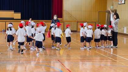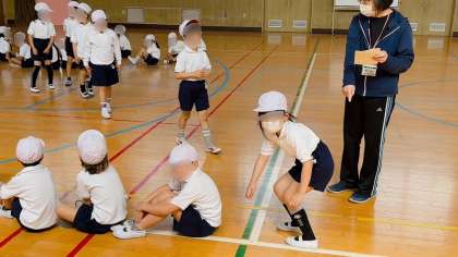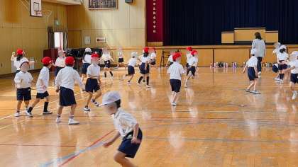 体育の学習です。体育の時の並び順を確認しました。その後、先生が立った場所に素早く並ぶ練習です。早く並ぶことが出来れば、それだけ運動の時間が多くとれます。がんばって!