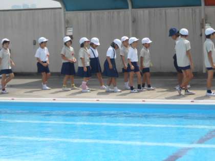 教室から運動場に、運動場からプールサイドに迅速に避難できました。