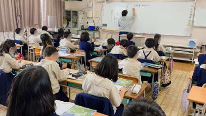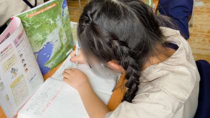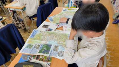 社会科の学習です。大阪府の地図をみて、見つけたことを発表していました。