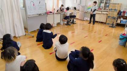 年度当初に身長や体重、視力、聴力などいろいろな測定や検査をします。成長の様子や身体の状況などを本人や保護者、学校が把握しておくためです。写真は、3年生の聴力検査の様子です。