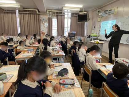 C-NETに来ていただいての英語の学習です。今年度も定期的に来ていただいて、ネイティブの発音を聞きいたり英語圏の方々の考え方にふれたりしながら英語を学んでいきます。