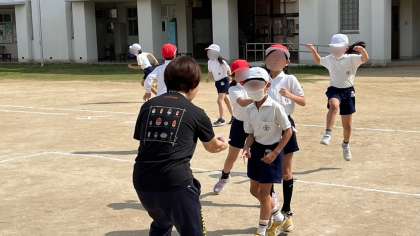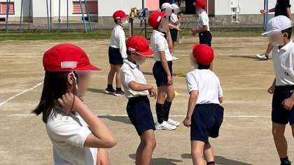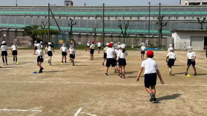 1・2組合同で体育をしていました。ジャンケンゲームを楽しんでいました。