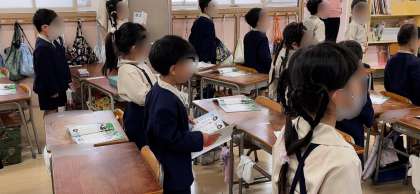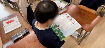 国語の学習です。大きな声で短文の音読をしていました。教科書を見ながらの子もいましたが、覚えている子もいました。
