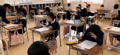 下段は2組、理科のテストに取り組んでいます。