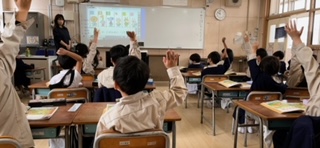 算数の学習で「何番目?」を考えていました。動物が競争している絵を見て「犬は何番目ですか?」「ライオンは何番目ですか?」との質問に、たくさん手が挙っていました。