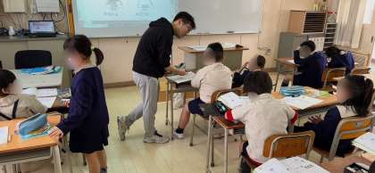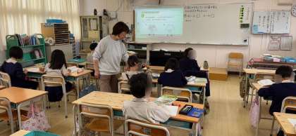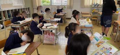 算数の分割学習の様子です。どのグループも先生と子どもたちとのやりとりが活発に行われています。