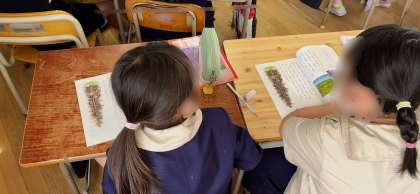 国語の学習です。今日から「たんぽぽ」の学習に入ります。たんぽぽのいろいろを説明する説明文です。物語文との違いの説明から学習が始まりました。