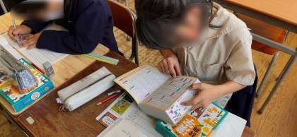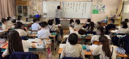 国語で、漢字辞典の使い方を学習していました。自分の興味のある漢字(ほとんどの子が自分の名前に使われている漢字でした)を調べていました。